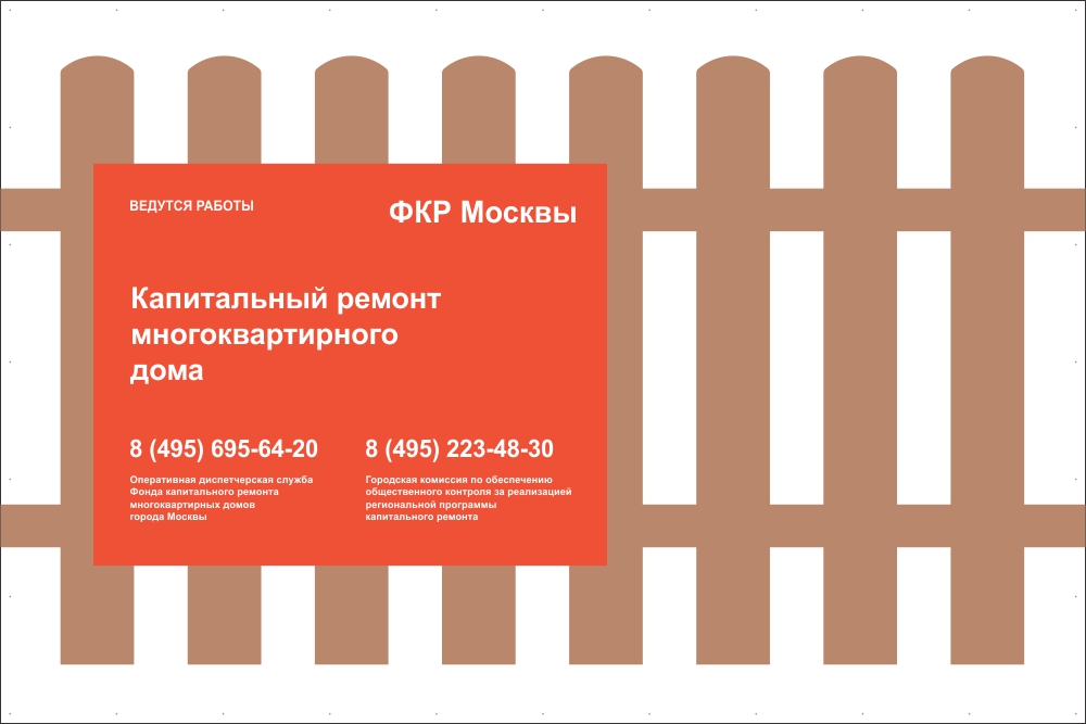 Согласно факсограмме Департамента капитального ремонта города Москвы от 24.10.17г. ограждения мест проведения ремонтных работ производятся в виде баннерной сетки с дизайном «ШТАКЕТНИК». Данные ограждения защищают прохожих от строительной пыли и мусора и предупреждают о проводимых ремонтных работах.