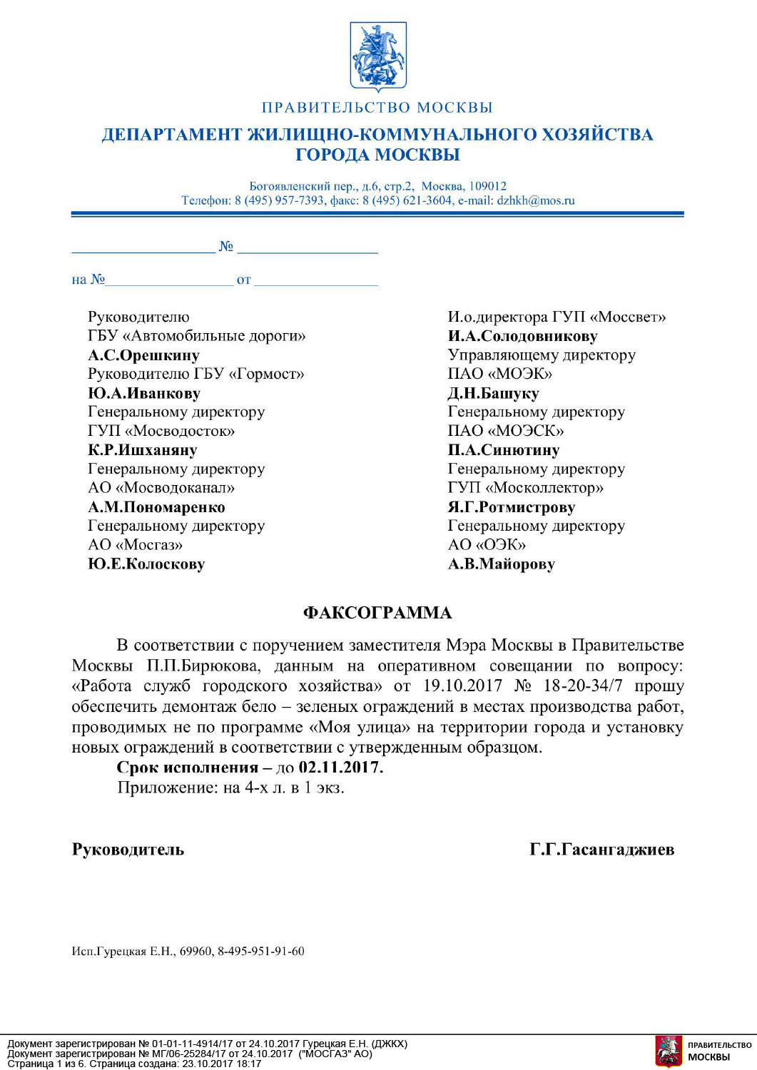 (На основании факсограммы Правительства города Москвы Исх. № 01-01-11-4914/17 от 24.10.2017)