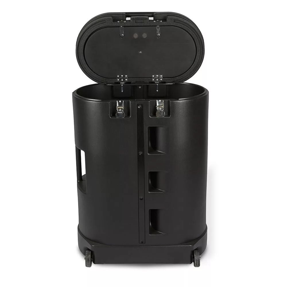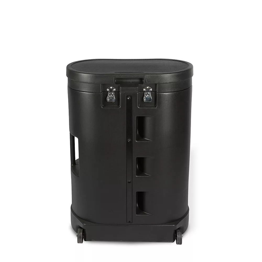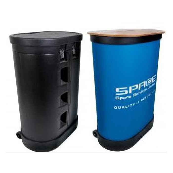 Жесткий пластиковый бокс на колесах для хранения и транспортировки элементов конструкции ПопАП. Также может использоваться как стойка ресепшн на выставке, для этого его можно дополнить фотопанелью и столешницей.