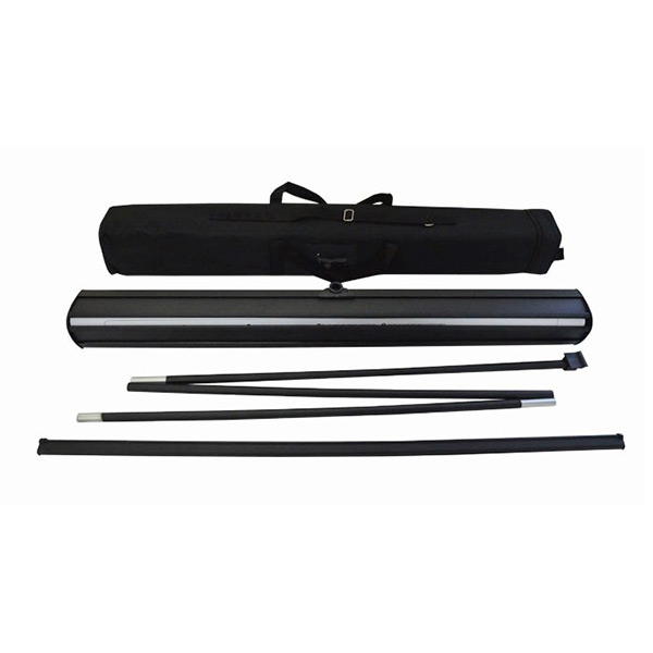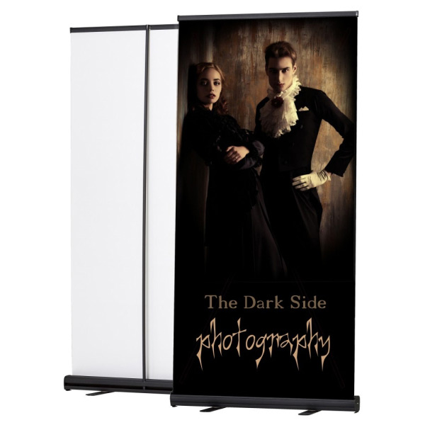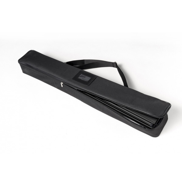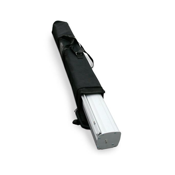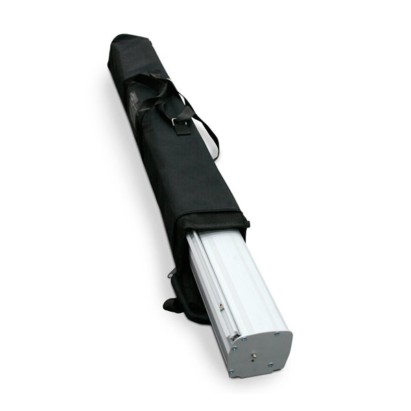 Модель Roll Up стенда с полностью алюминиевой конструкцией с усилением места крепления вертикальной опоры и усиленной зажимной верхней планкой. Модель полностью черного цвета. Прочная двойная сумка-чехол с уплотнителем в комплекте. Вес с фотополотном от 2,5 до 5 кг в зависимости от размера.
