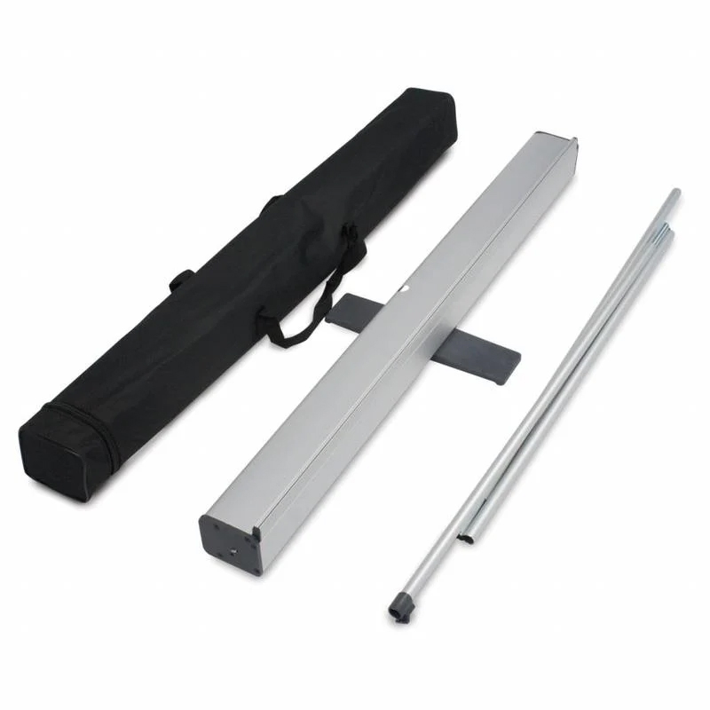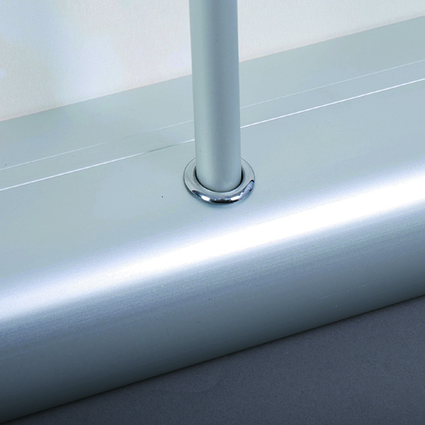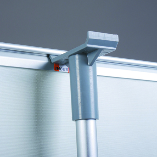 Для установки Ролл-Апа нужно развернуть полотно и зафисиксировать его в вертикальном положении с помощью телескопической трубки. Крепление к стене или к полу не требуется.