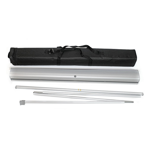Модель Roll Up стенда с корпусом из алюминиевого профиля квадратного сечения с одной выдвижной ножкой и боковинами из прочного пластика АБС черного цвета, зажимной верхней планкой для фотополотна. Корпус серебряного цвета с черными наконечниками. Сумка-чехол в комплекте. Вес с фотополотном от 2,4 до 3,3 кг в зависимости от размера.